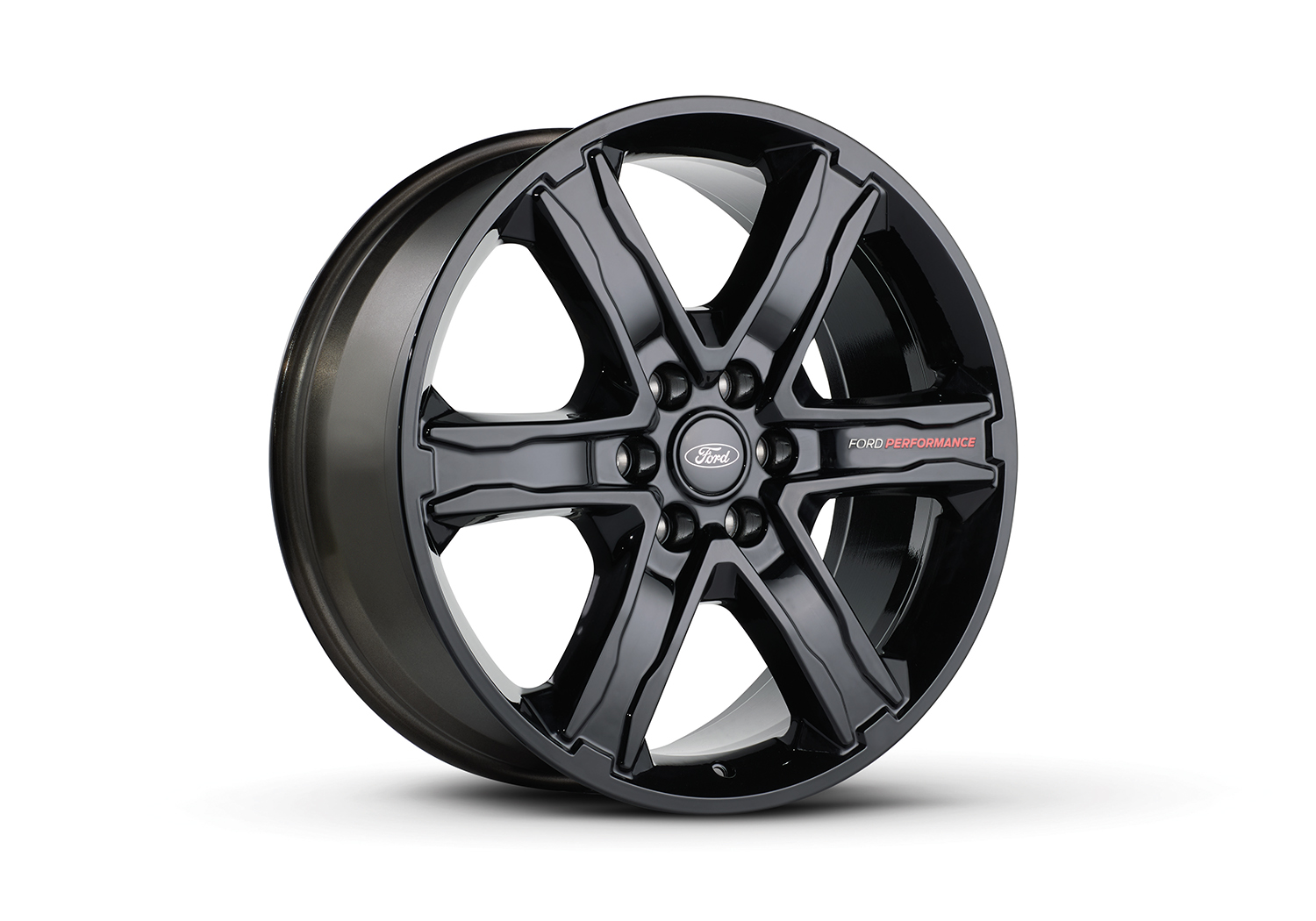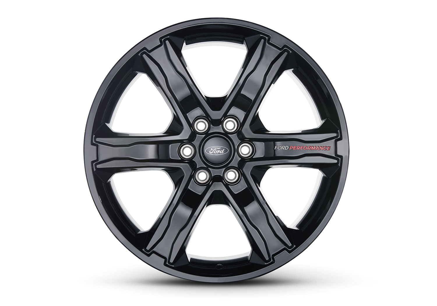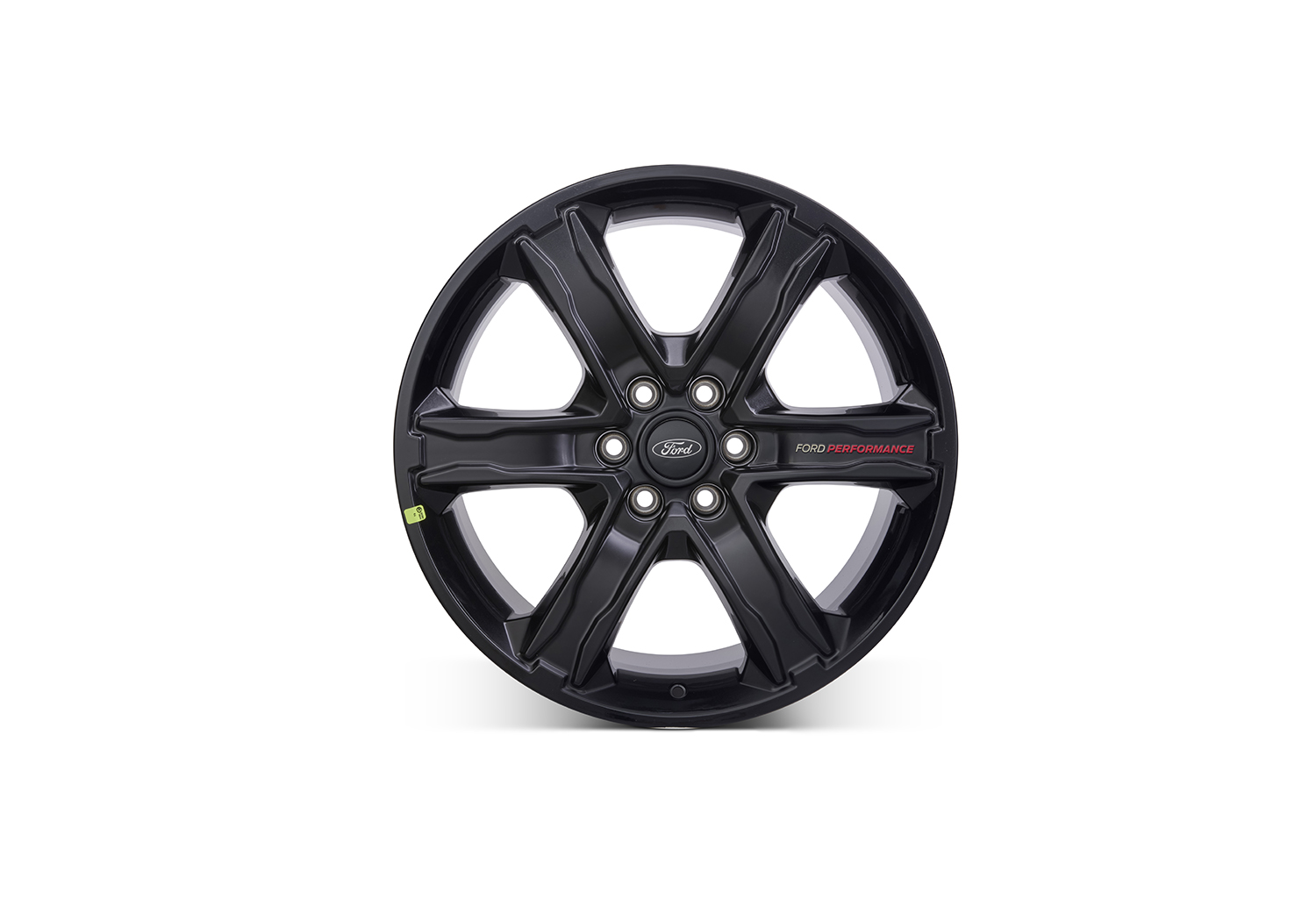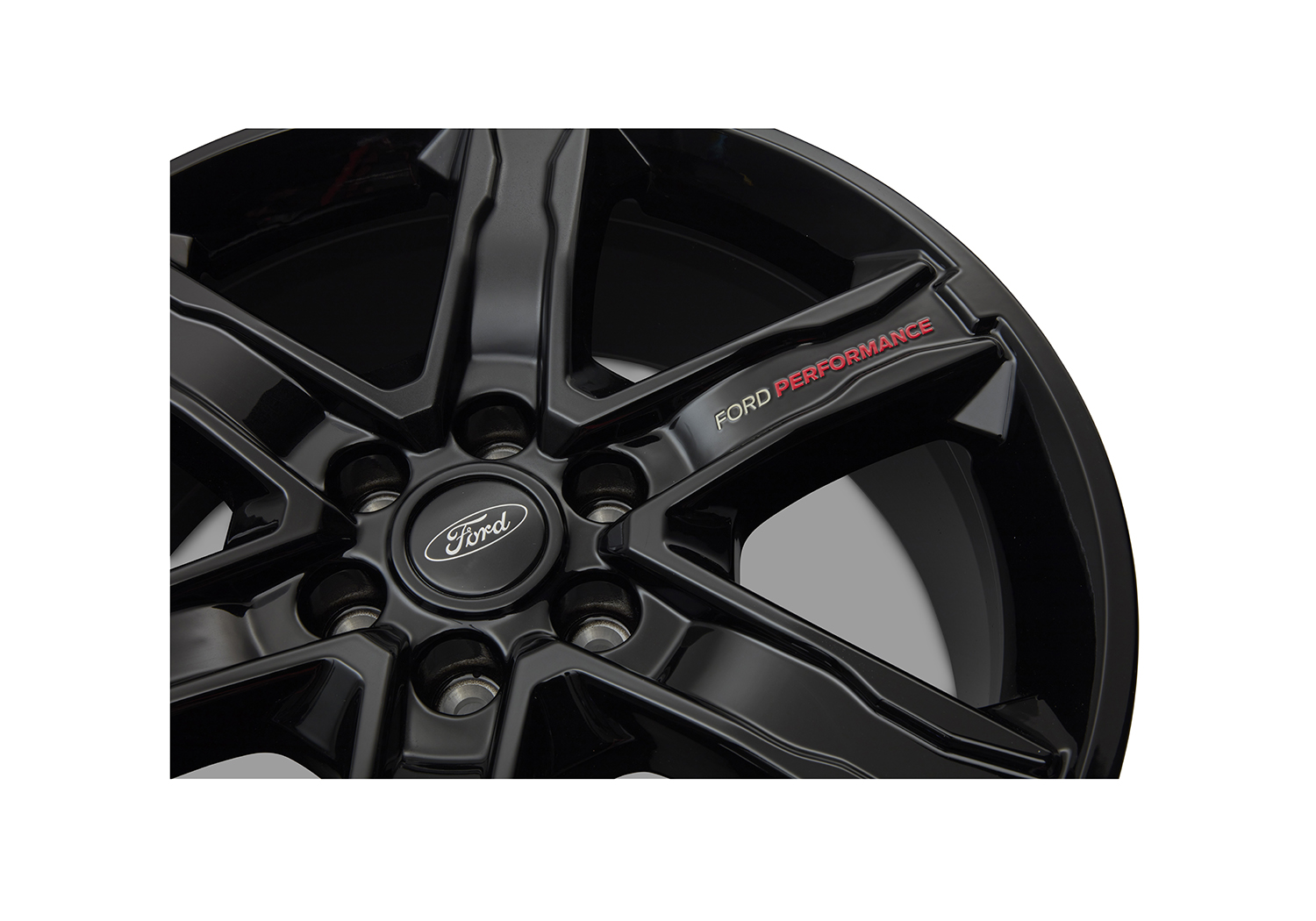 - Gloss black paint finish, with "Ford Performance" white and red branded spoke, clear-coated to OEM standards