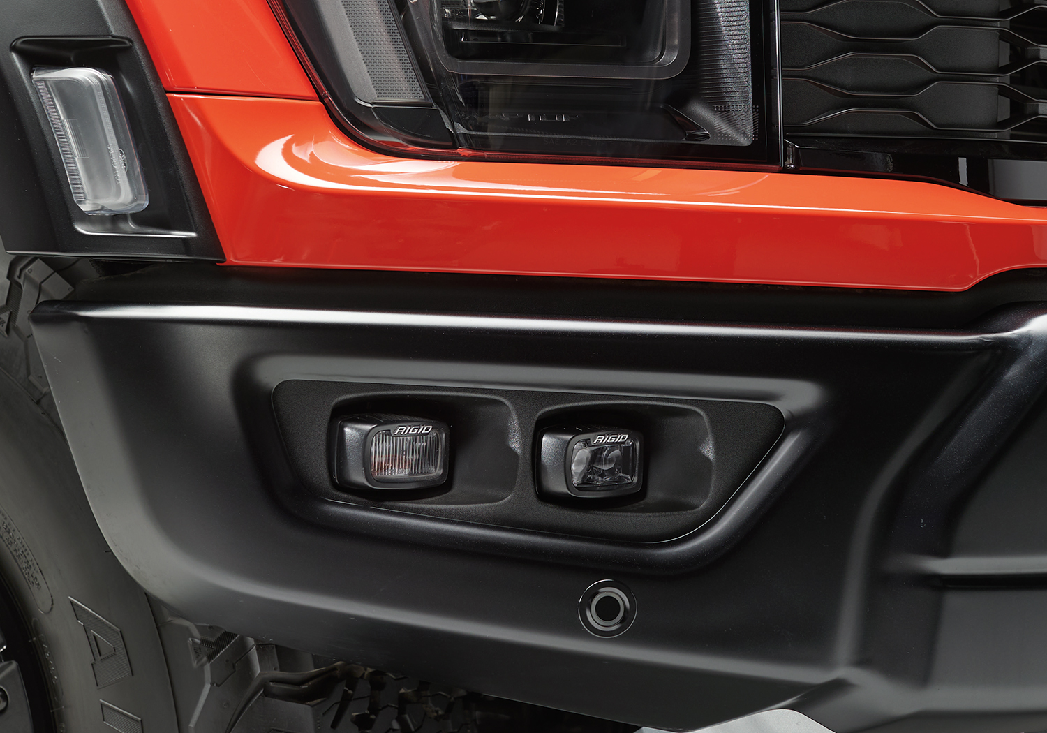 Ford Performance Parts worked with one of the most recognized names in off-road lighting, RIGID® to develop this Off-Road Light Upgrade Kit which works exclusively on the 2021-2026 F-150 Raptor & 2022-2026 Bronco Raptor with the factory equipped fog lights. This kit allows you to change your factory auxiliary light assemblies to the custom Ford Performance by RIGID® driving lamps in your Raptor Bronco or F-150 Raptor OEM fog light locations. This kit includes everything you need to mount the lights for a clean, “from-the-factory” look. Made from high quality components, these complete assemblies are plug-and-play and completely reversible with no cutting or splicing. These assemblies are sure to deliver an easy-to-install, high quality off-road light package.