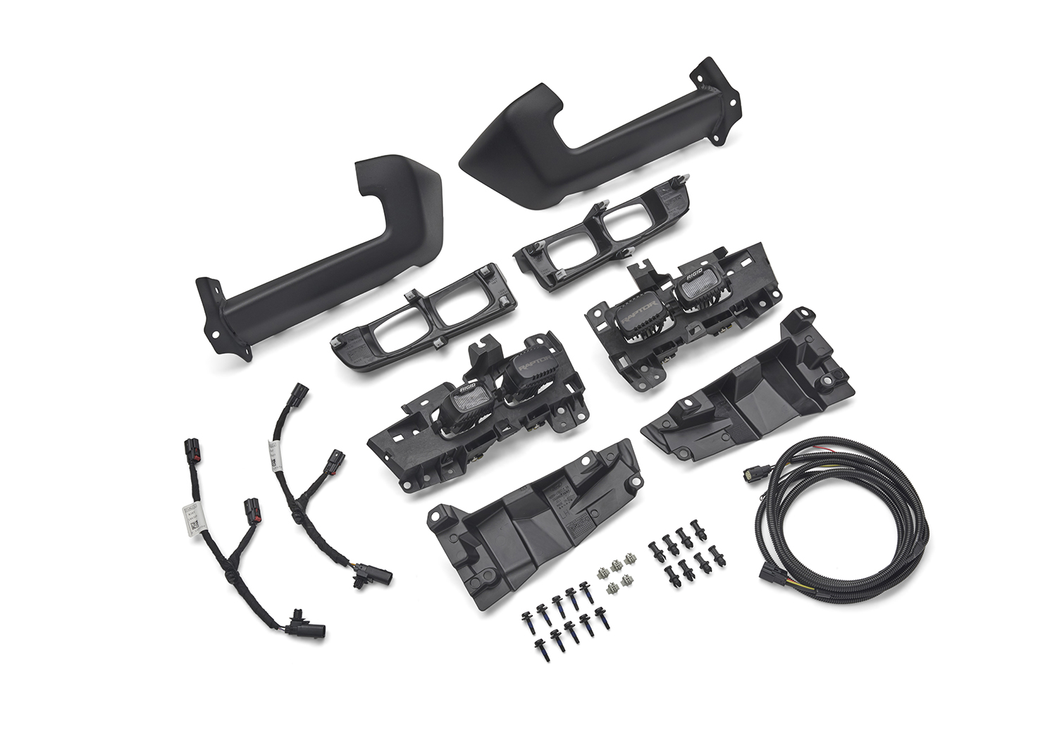 NOTE: This kit is only for use with the Ford Performance Modular front bumper, available as standard on Raptor, optional on non-Raptor models. The Modular front bumper is available as M-17757-BM for the non-Park Aid version and M-17757-BMP with Park Aid.