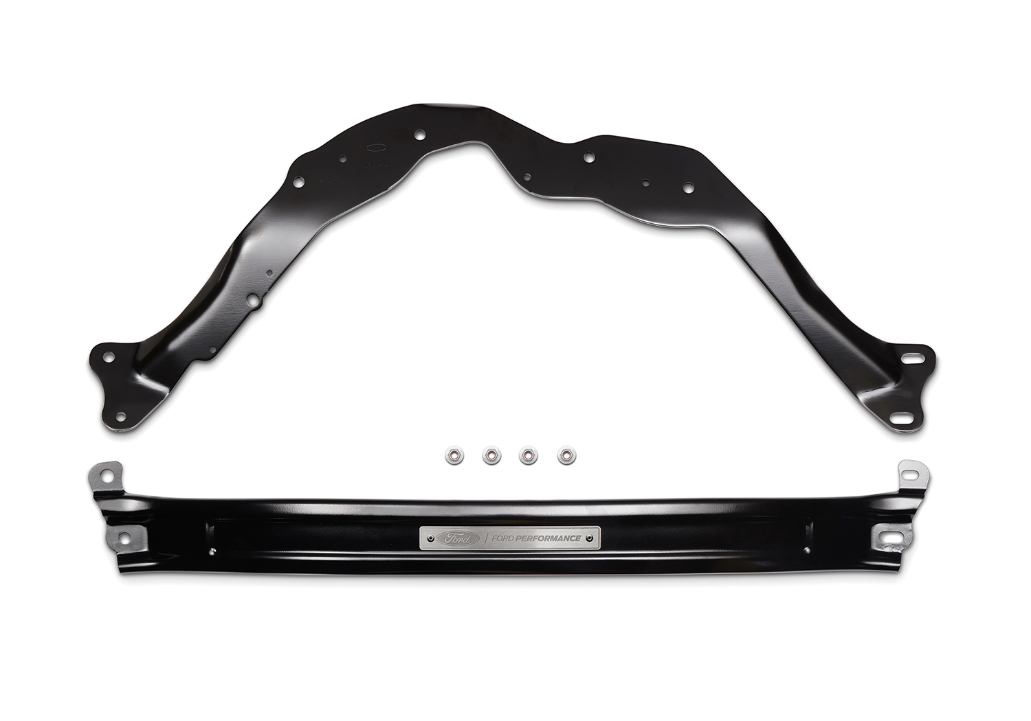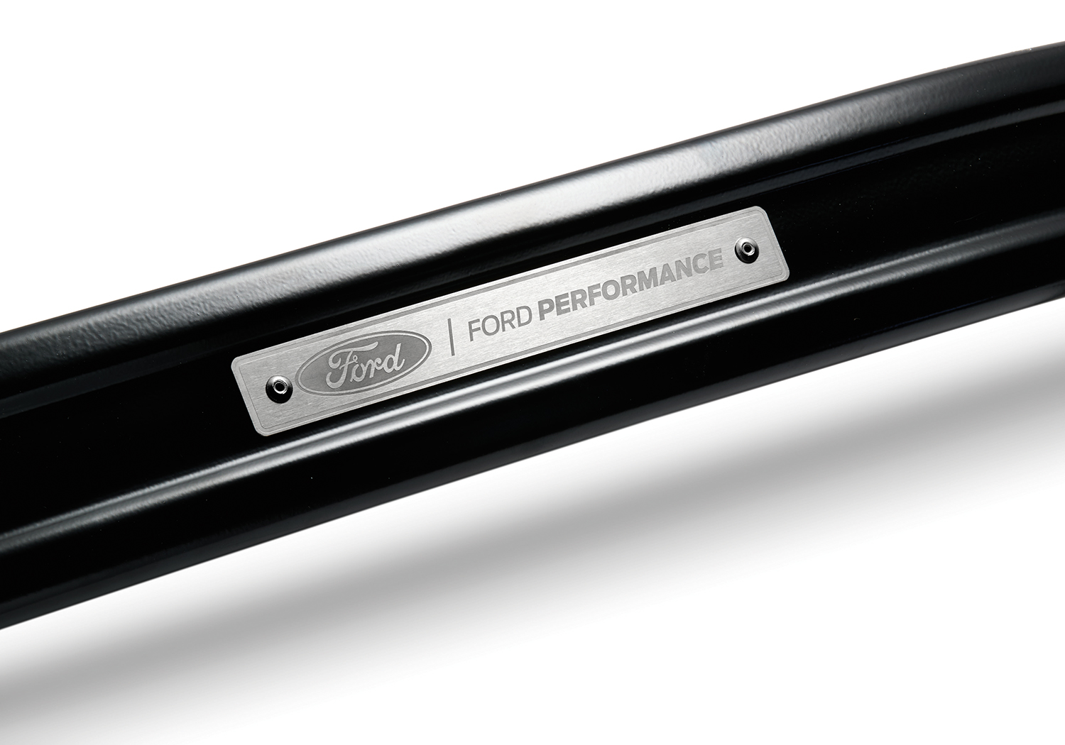 - Black powder coated brace with stainless steel Ford Performance emblem