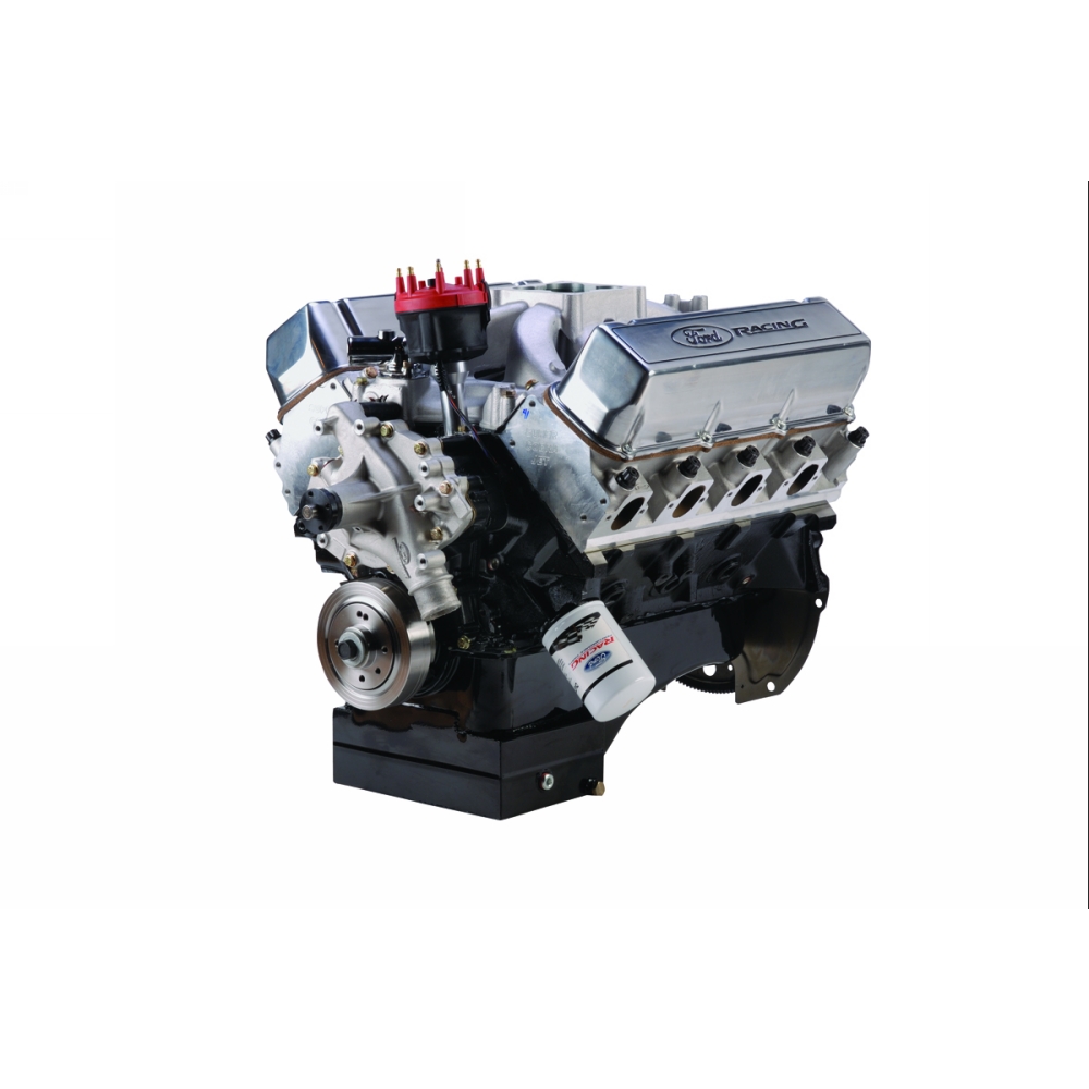 - A 521 cubic inch engine assembly that includes the items listed above and a multi-index timing chain set, push rods, roller rocker arms, heavy duty HV oil pump, pickup tube, high-performance oil pan, Ford Racing valve covers, aluminum front cover and water pump, high-performance damper, flywheel, spark plugs, related long block engine parts and NEW M-6010-A460 4-bolt main block