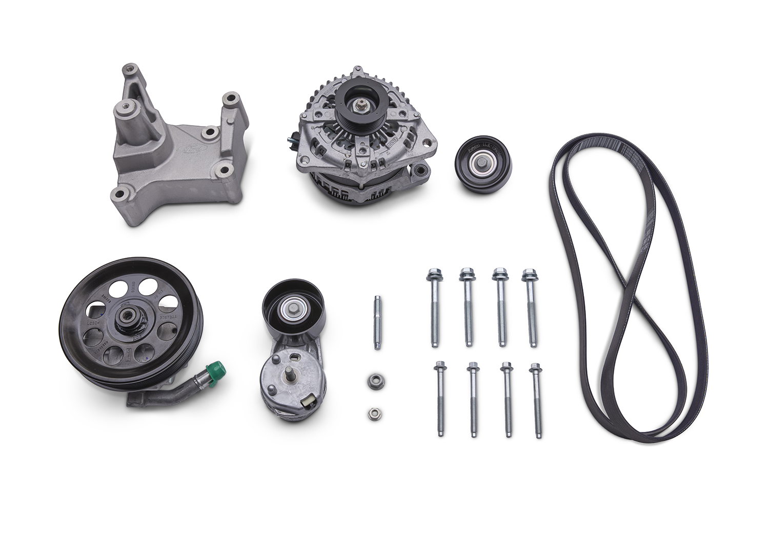 Front accessory drive kit for the M-6007-73 and M-6007-73B engine. Kit contains the following 7.3L components from the 2020+ F250 Super Duty: