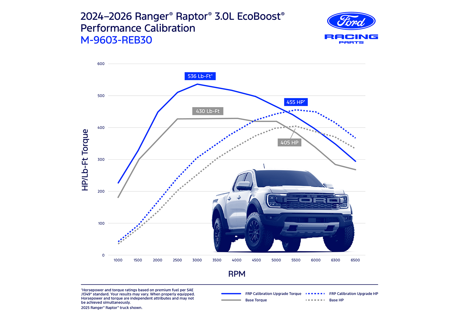 Enhance the engine performance of the 3.0L EcoBoost engine in your 2024-2026 Ranger Raptor. Ford Racing Parts calibrations are engineered and dyno tested to deliver more power and increased performance while maintaining reliability.