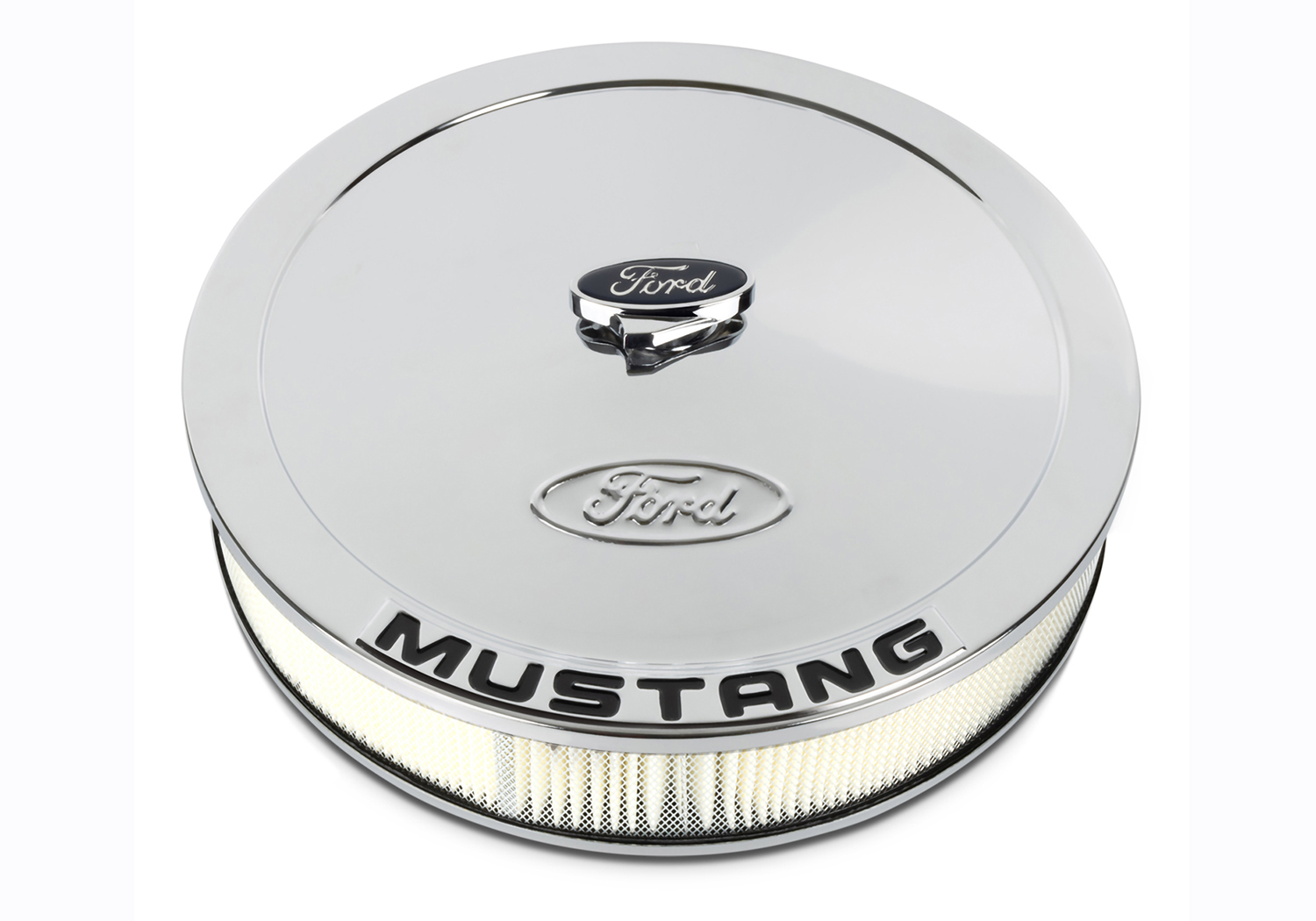 13" Diameter Air Cleaners: Add a Ford RACING, MUSTANG or COBRA Air Cleaner to your engine for that customized look. These 13" diameter air cleaners fit both 2 barrel and 4 barrel carburetors and include a high-performance filter element. Ford logo air cleaner center nut is also included.