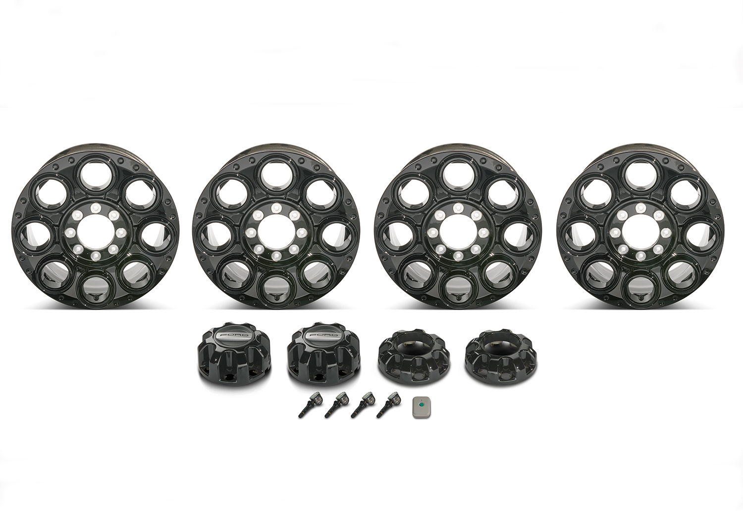 - Includes two open and two closed "FORD" center caps painted high gloss black to match the wheels on 4WD applications