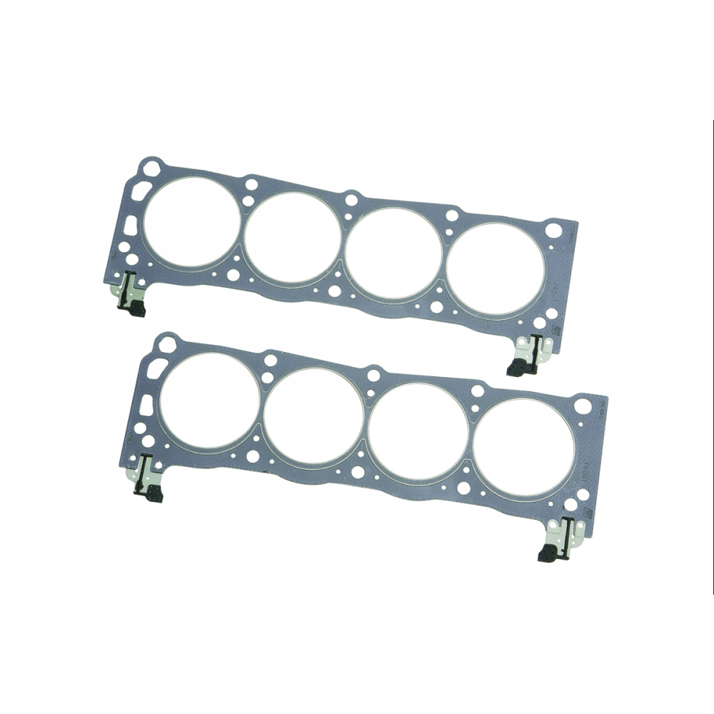 | M-6051-A302** | 289/302/351W Production-Type Cast Iron and Aluminum Heads | 4.00" | 4.100" | 0.042" | 9.1cc | 4.00" standard bore "competition" gasket for cast iron or aluminum cylinder heads on 302 and 351W production blocks. Features solid metallic core with wire encased combustion chamber seal for applications. Surfaces are Teflon coated. |