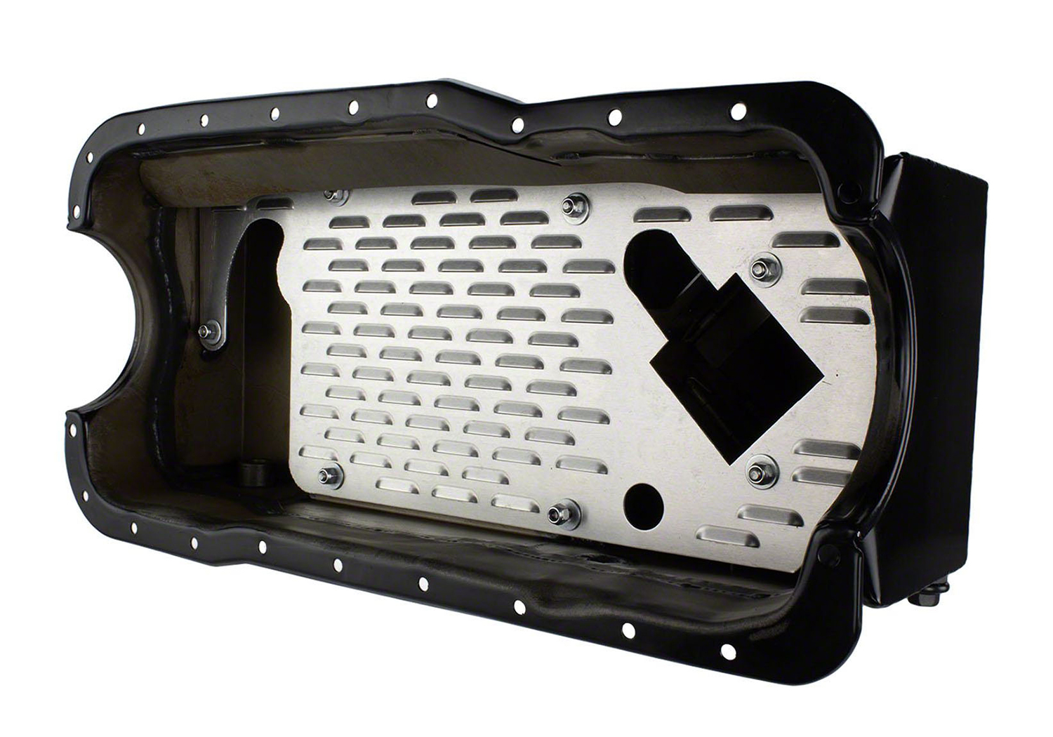- Baffling and trap doors in the sump to keep the pickup submerged during performance driving